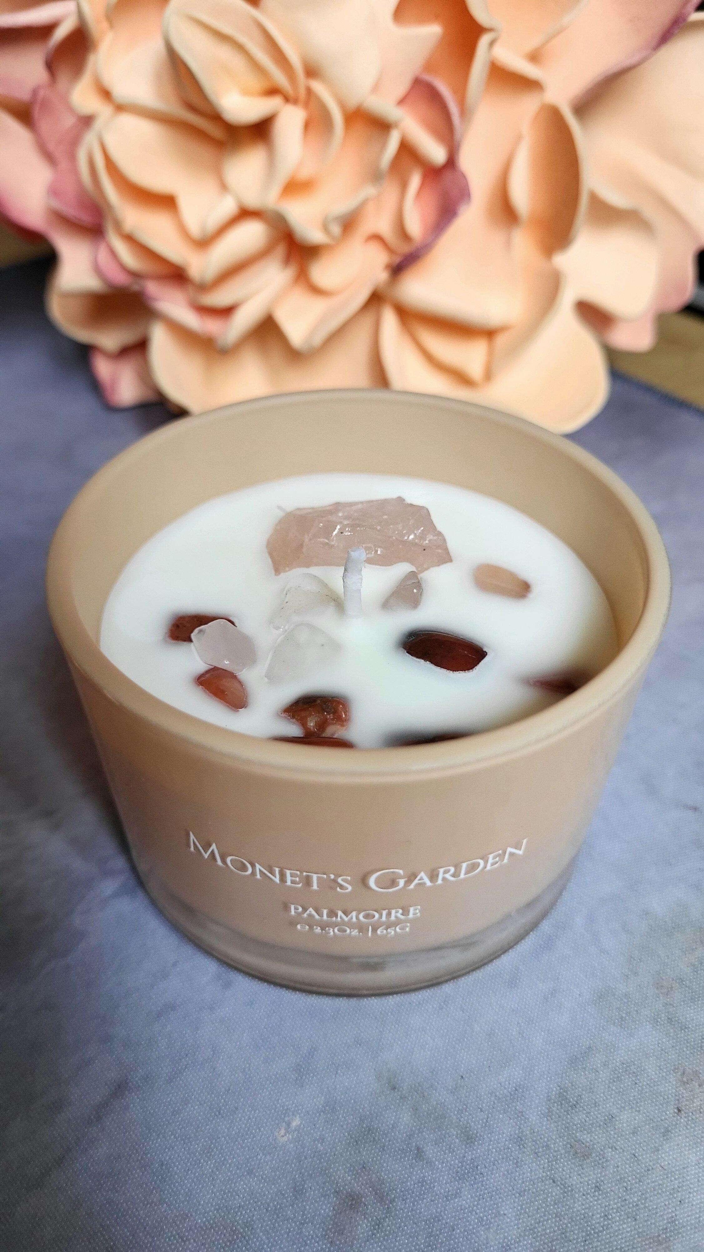 Monet's Garden Duftkerze mit Bergkristall - Rose, Lilie & Mandel